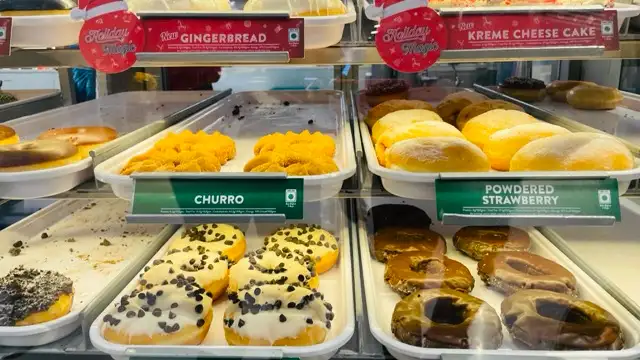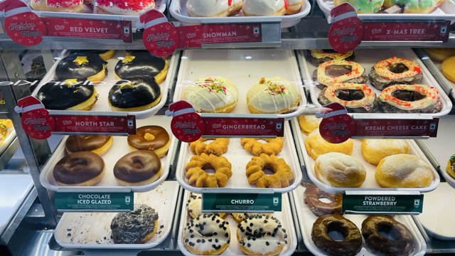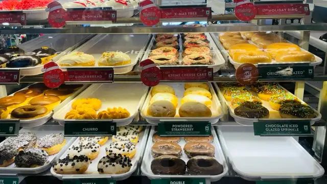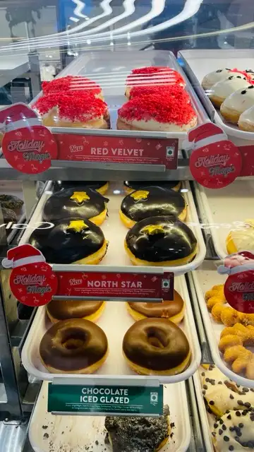The American international doughnut firm and coffee shop chain is called Krispy Kreme, Inc. (Krispy Kreme Doughnuts, Inc.). Krispy Kreme is famous for its soft, fresh doughnuts and rich coffee. This is located in most of the malls in Bangalore, this was taken from the Nexus mall, Koramgala.