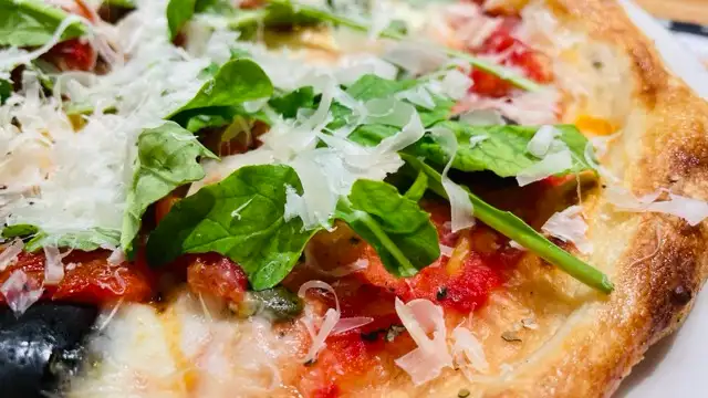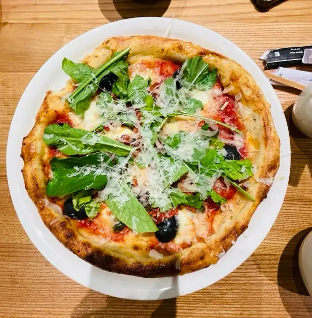 Passata, mozzarella cheese, olives, crispy rocket, nutty shaved emilgrana, soft baby mozzarella & extra virgin olive oil.